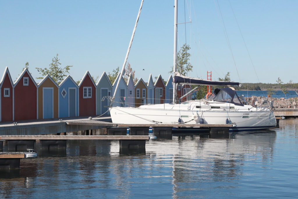 Hamnholmenin lahdessa voi pitää hyvin tuulta ennen väylälle menoa. Siitä on kätevä mennä joko Gullkronan suoralle tai Paraisten porttiin.